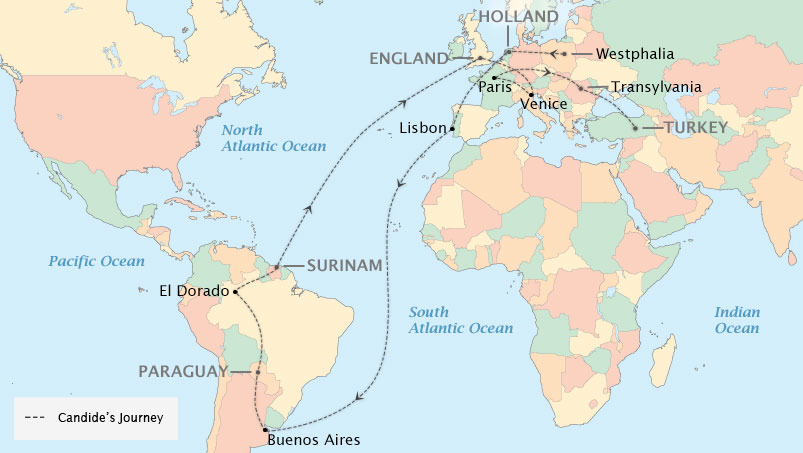Vì lý trí quan trọng hơn truyền thống xã hội hay đức tin tôn giáo, Voltaire không ngại ngùng dựng nên những cảnh châm biếm xã hội còn nhiều oan trái bất công. Đúng vậy, khi lên tầu qua Nam Mỹ, Candide cùng người yêu Cunégonde được nghe câu chuyện của bà già người hầu cô.