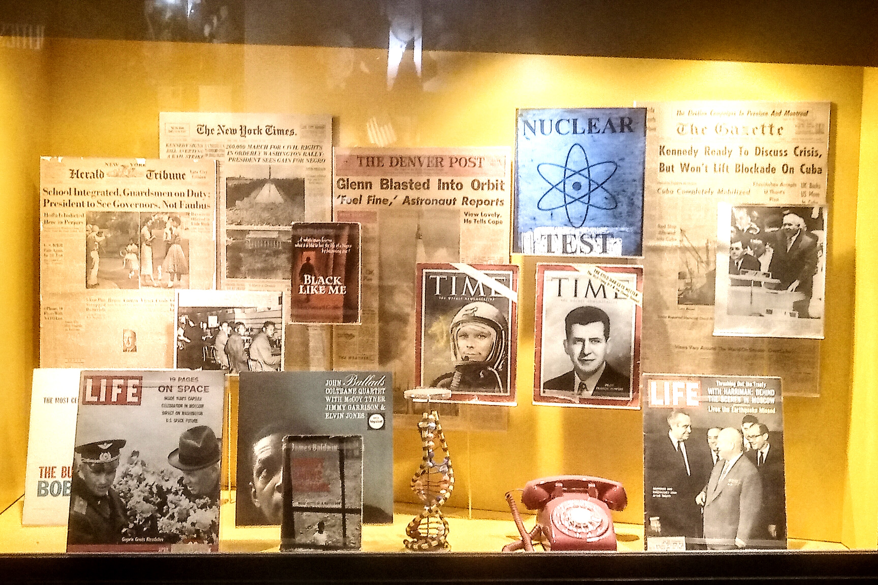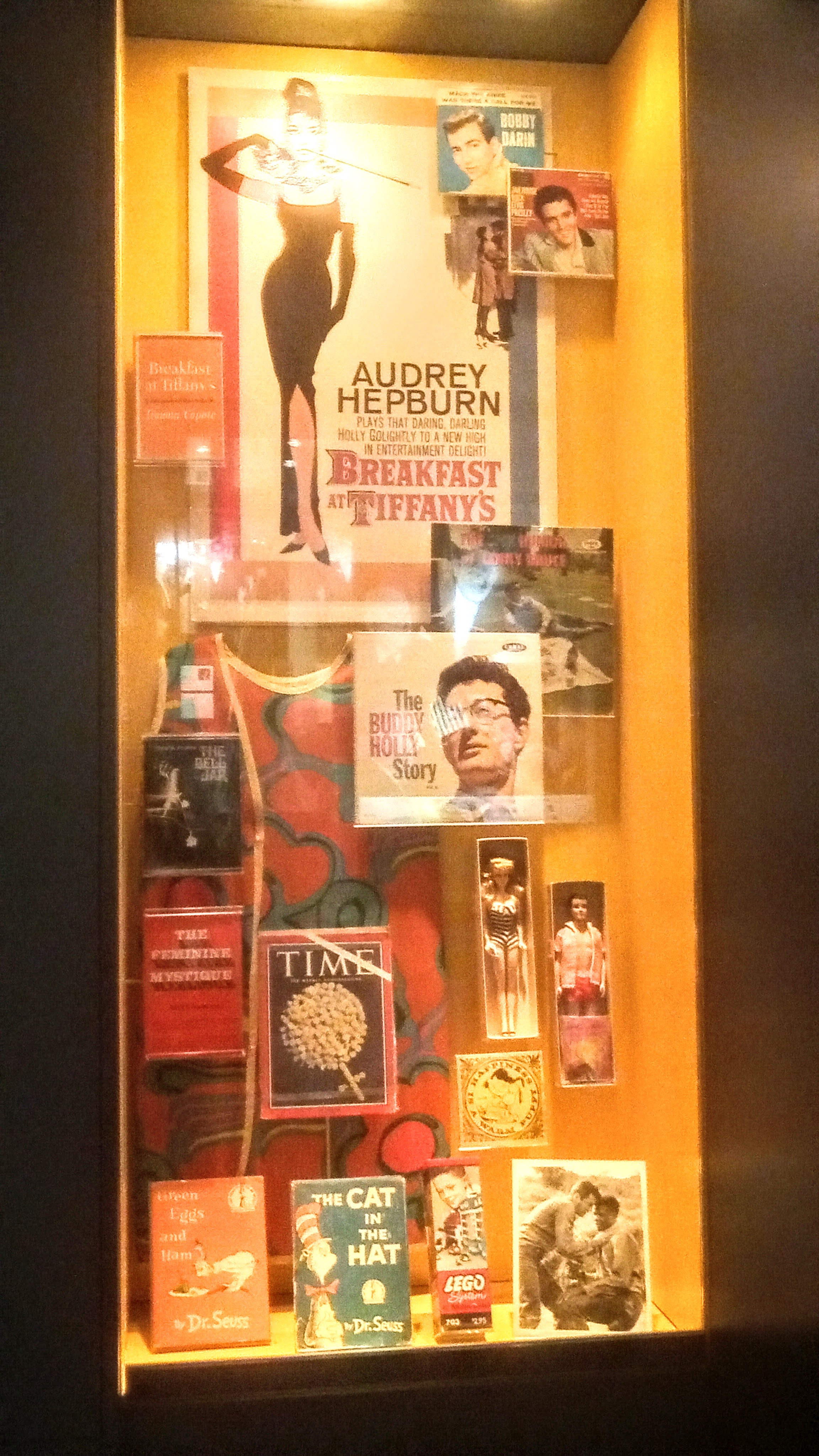Another surprise was found among the display cases of cultural artifacts in the postwar era. Mostly popular culture plus a few items that could be considered to be “elitist” or high culture. They are sprinkled with a dosage of headlines of major political and diplomatic news.