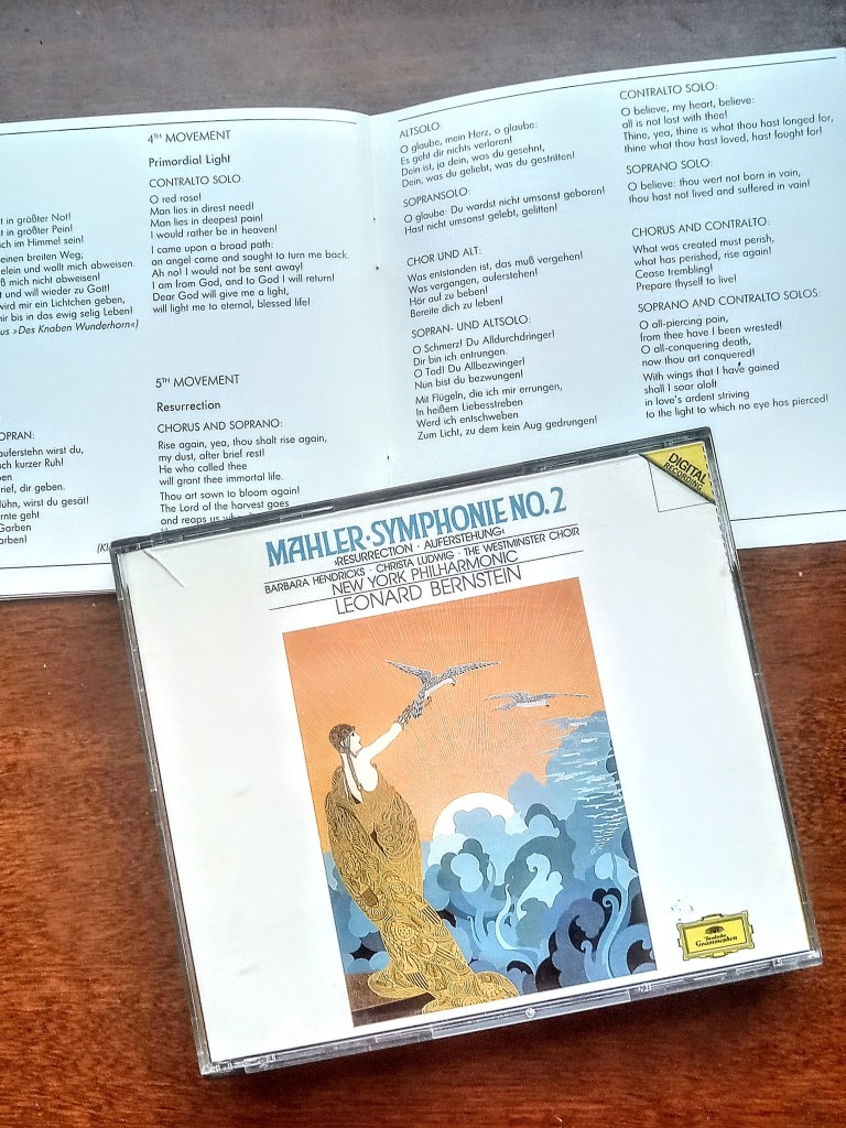 Listening to it after all these years reminded me why I bought CDs of several Mahler symphonies yet I’d never listened past the first two. It’s because the fifth and final movement of the Resurrection Symphony is long and complex. In writing the earlier movements, Mahler seems to have pushed the sonata form as far as possible. Now, he seems to have attempted to create something new out of the sonata form. It makes for a challenging listening for someone who doesn’t read or play music like myself.
