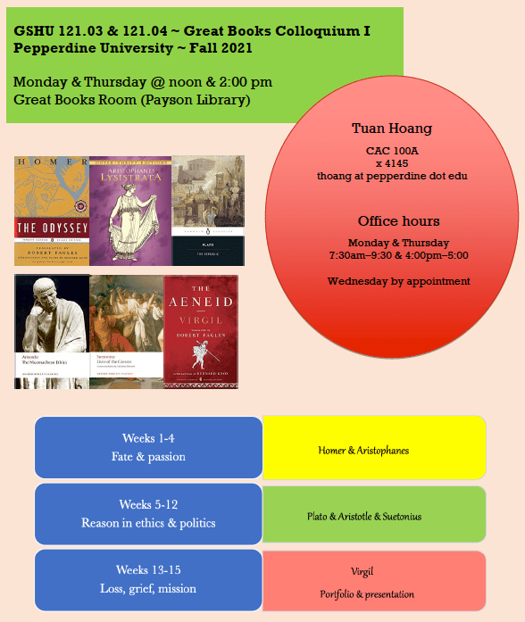 I am tenured to the Great Books Program and I’ve taught the four-course sequence several times. Since the pandemic, I’ve been teaching Great Books: Special Topics that is required for the Great Books minor. Initiated by Great Books students, the minor was first offered during 2020-2021 and the Special Topics course is offered frequently. Since Spring 2025, I’ve also taught Asian Great Books on a regular basis.